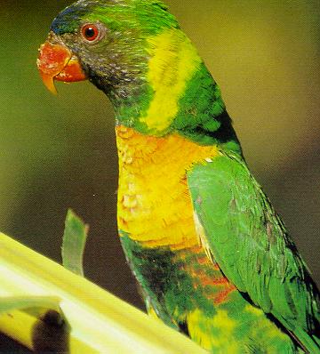 - Scaly-Breasted Lorikeet [Gold & Green Lorikeet, Green Lorikeet, Green & Yellow Lorikeet, Green Keet, Green Parrot, Green Leek, Greenie, Green Leaf, Scaly] {Trichoglossus chlorolepidotus}